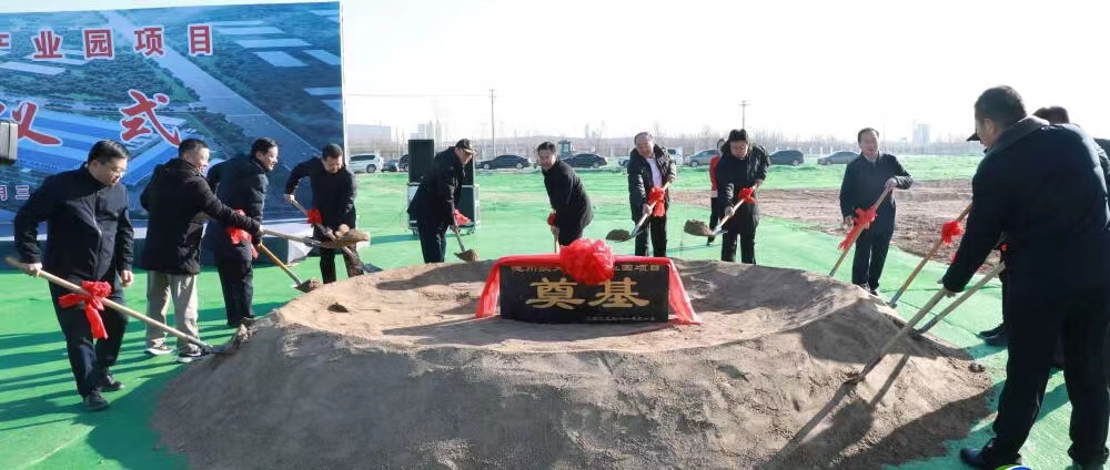 出席开工仪式的领导一同为德州航天食品产业园项目执锹培土奠基。