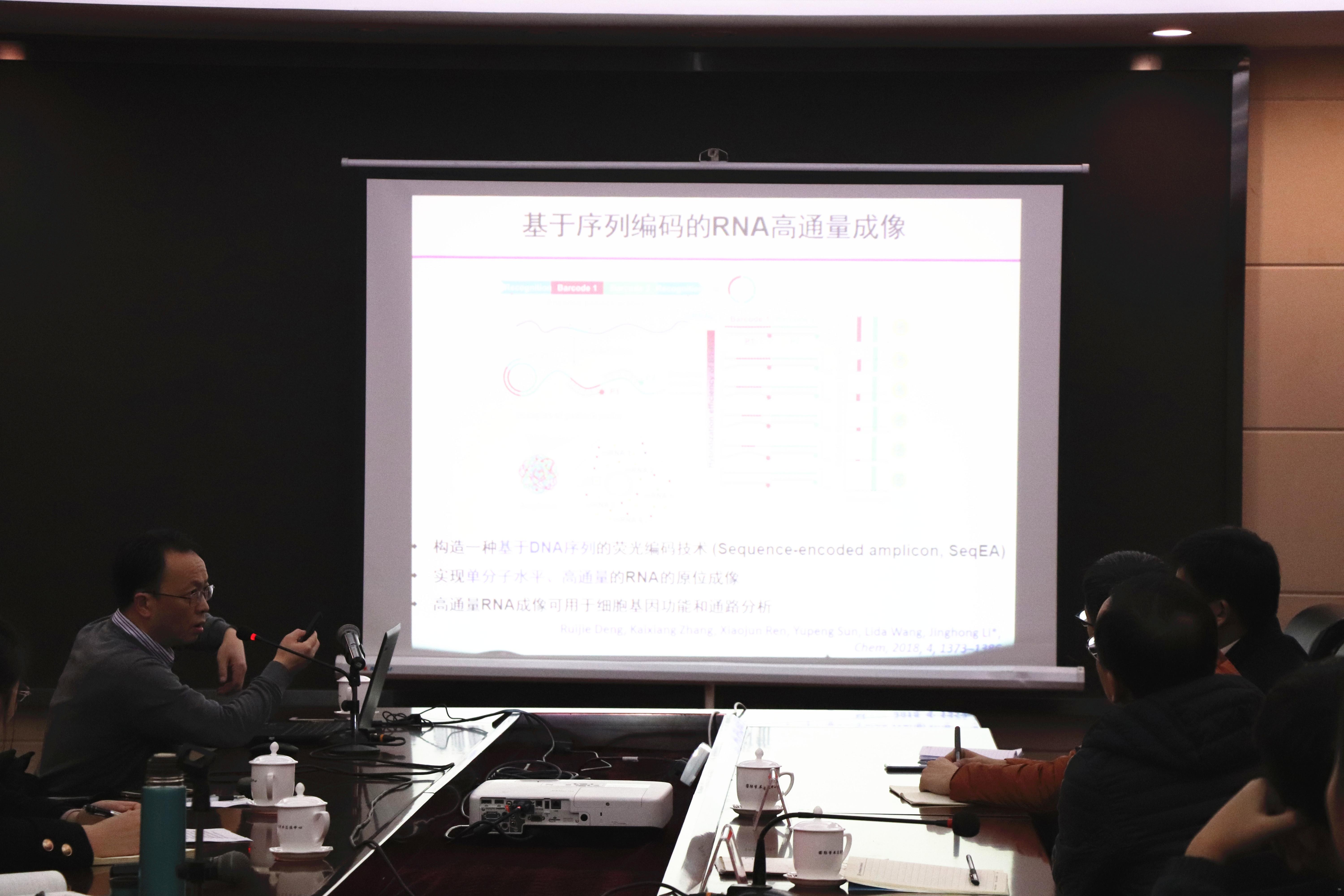 报告中,李景虹教授介绍了单细胞生物学发展的关键、发展趋势及存在的主要问题,详细阐述了其团队在单细胞分析方面所取得的典型工作,从单分子miRNA成像、活细胞内多元核苷成像及细胞信号转录机制的原位无标成像、高通量RNA成像,分析未来几年单细胞分析技术发展的目标与机遇。李景虹教授表示单细胞研究将更准确、更全面地反映细胞生理状态和过程,对于疾病早期诊断和个性化治疗具有重要意义。报告层层深入,报告现场学术氛围浓厚,师生交流效果良好。