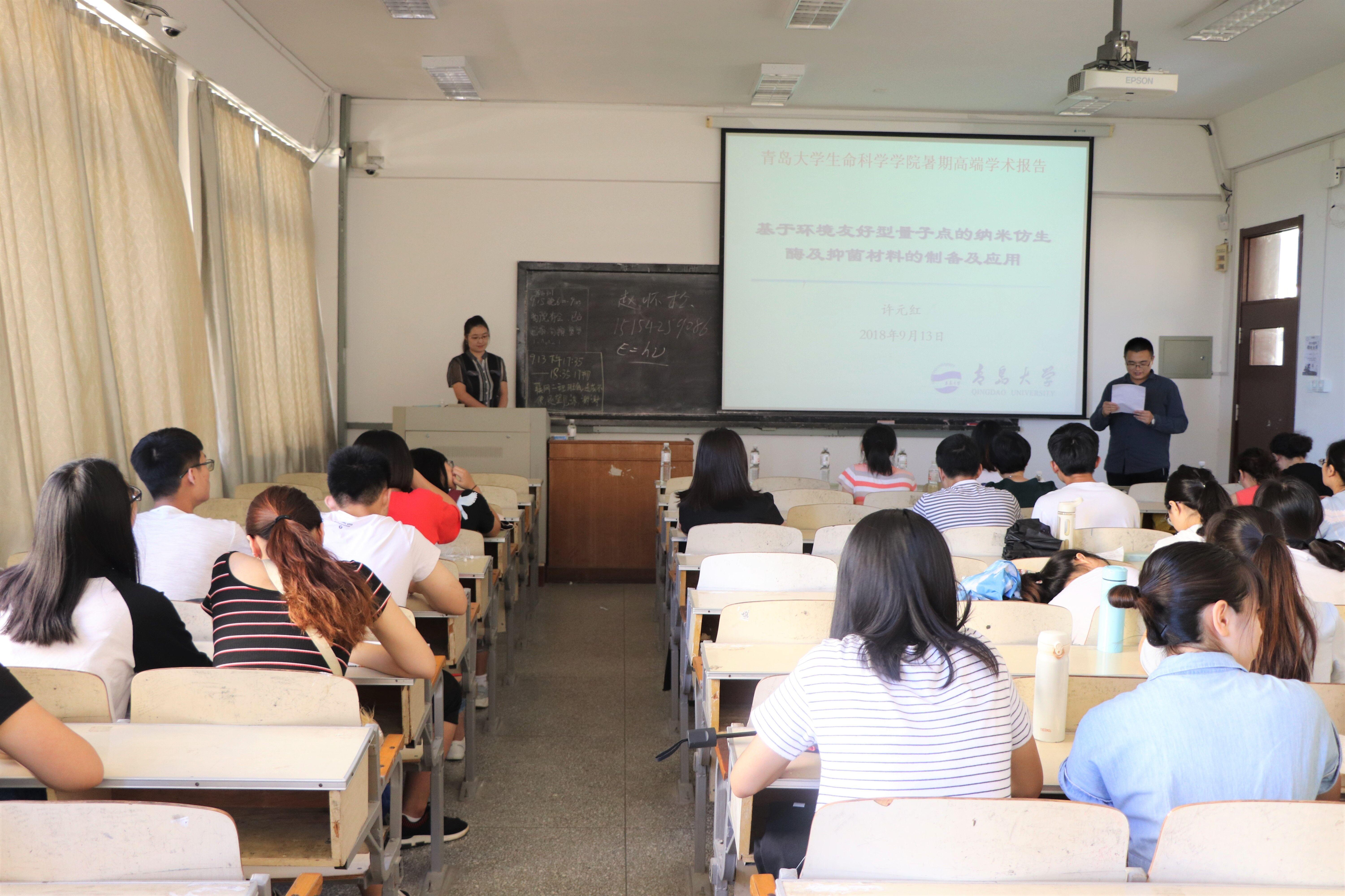 9月13日上午,jinnianhui今年会官网特聘教授、jinnianhui今年会官网博士生导师许元红教授在博知301教室作了题为《基于环境友好型量子点的纳米仿生酶及抑菌材料的制备及应用》的学术报告。这是jinnianhui今年会官网夏季学期高端学术报告的第9场,报告会由学院生物技术系副主任常诚主持,学院相关专业师生共计60余人参加了本次报告会。