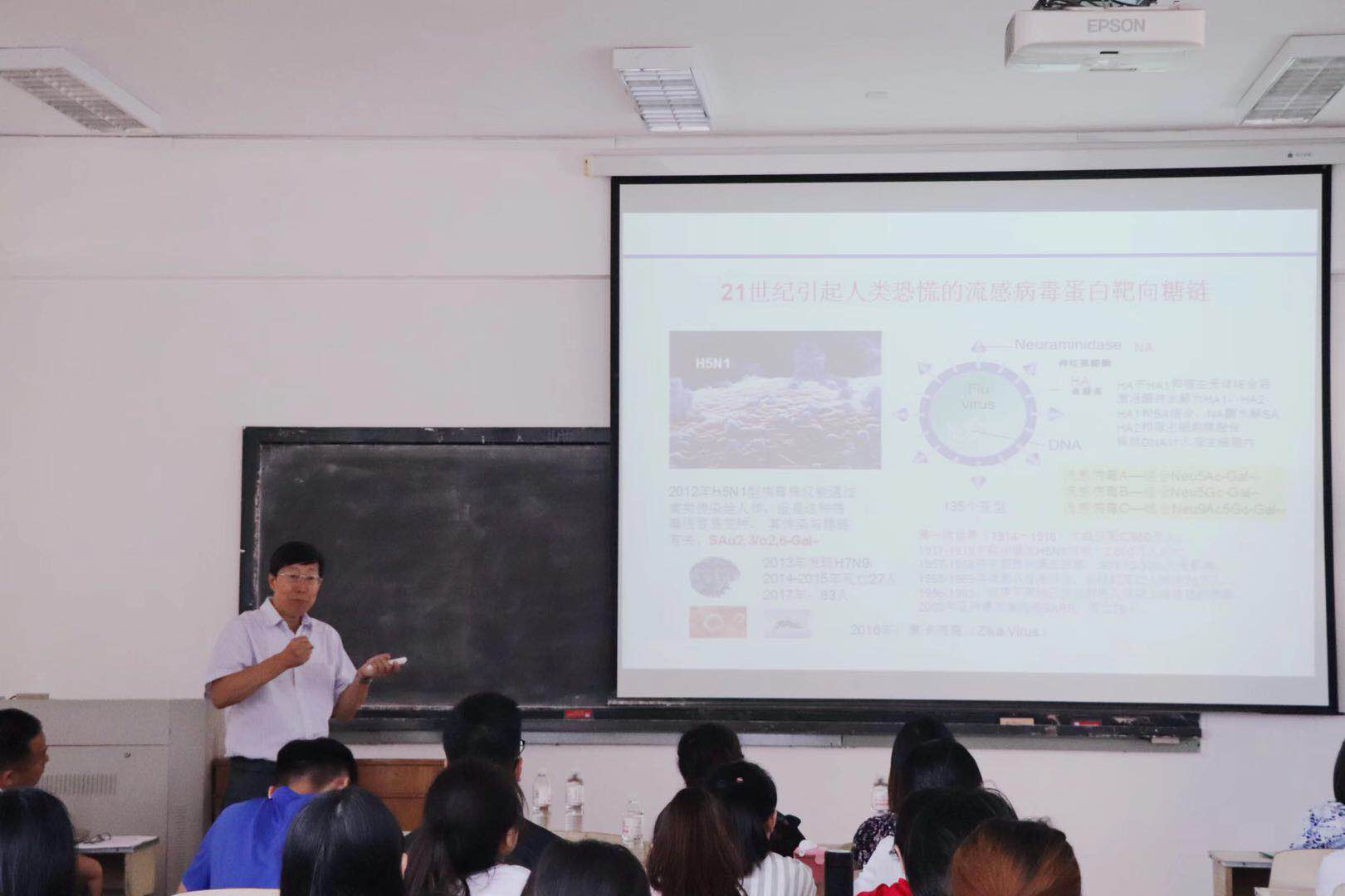 9月11日下午,中国海洋大学医药学院院长、博士生导师于广利教授应jinnianhui今年会官网邀请,在博知楼301教室作了题为“国内外海洋创新药物研发进展与思考”的学术报告,这是夏季学期高端学术报告的第7场。食品科学与工程系专业负责人魏玉西教授主持了本次报告会,jinnianhui今年会官网党委书记薛冰,相关专业师生共计80余人参加了本次报告会。