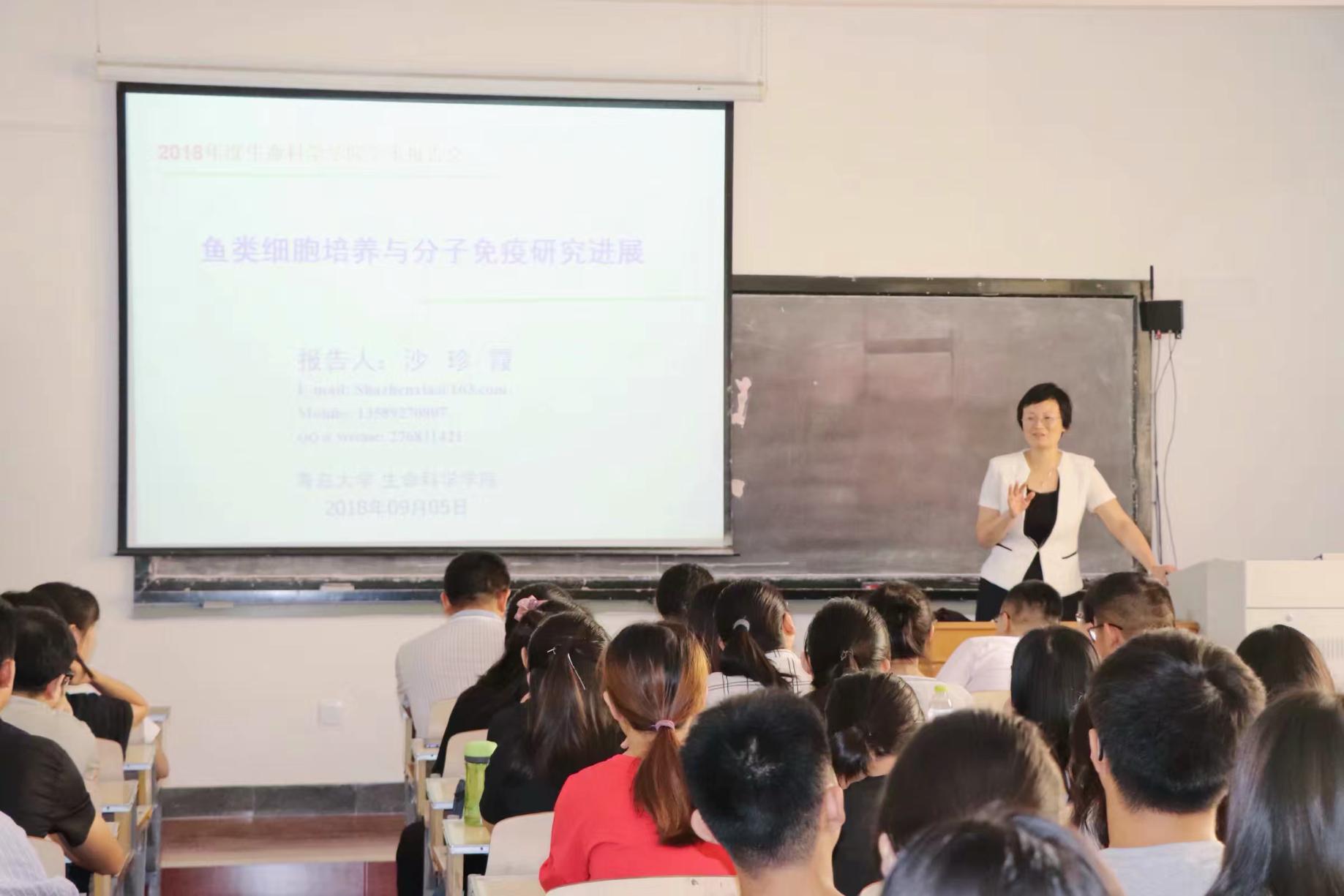 9月5号,jinnianhui今年会官网特聘教授、jinnianhui今年会官网博士生导师沙珍霞老师在博知310教室作了题为《鱼类细胞培养与分子免疫》的学术报告。这是学院夏季学期高端学术报告的第2场,报告会由学院生物技术系常诚副主任主持,学院相关专业师生共计80余人参加了报告会。