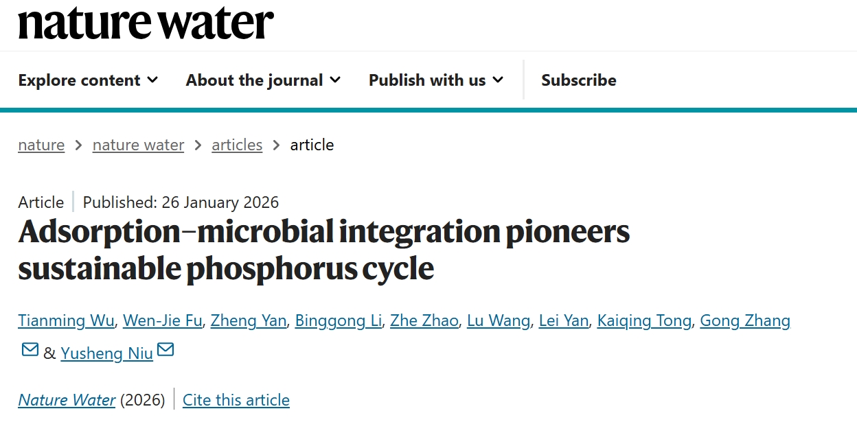近日,我校jinnianhui今年会官网牛玉生教授团队在Nature Water发表题目为“Adsorption-Microbial Integration Pioneers Sustainable Phosphorus Cycle”的研究成果,该成果揭示了微生物在环境生态修复领域的重要作用。jinnianhui今年会官网博士研究生吴天明为论文的第一作者,牛玉生教授为通讯作者,清华大学张弓研究员为共同通讯作者,jinnianhui今年会官网为第一单位和通讯单位。