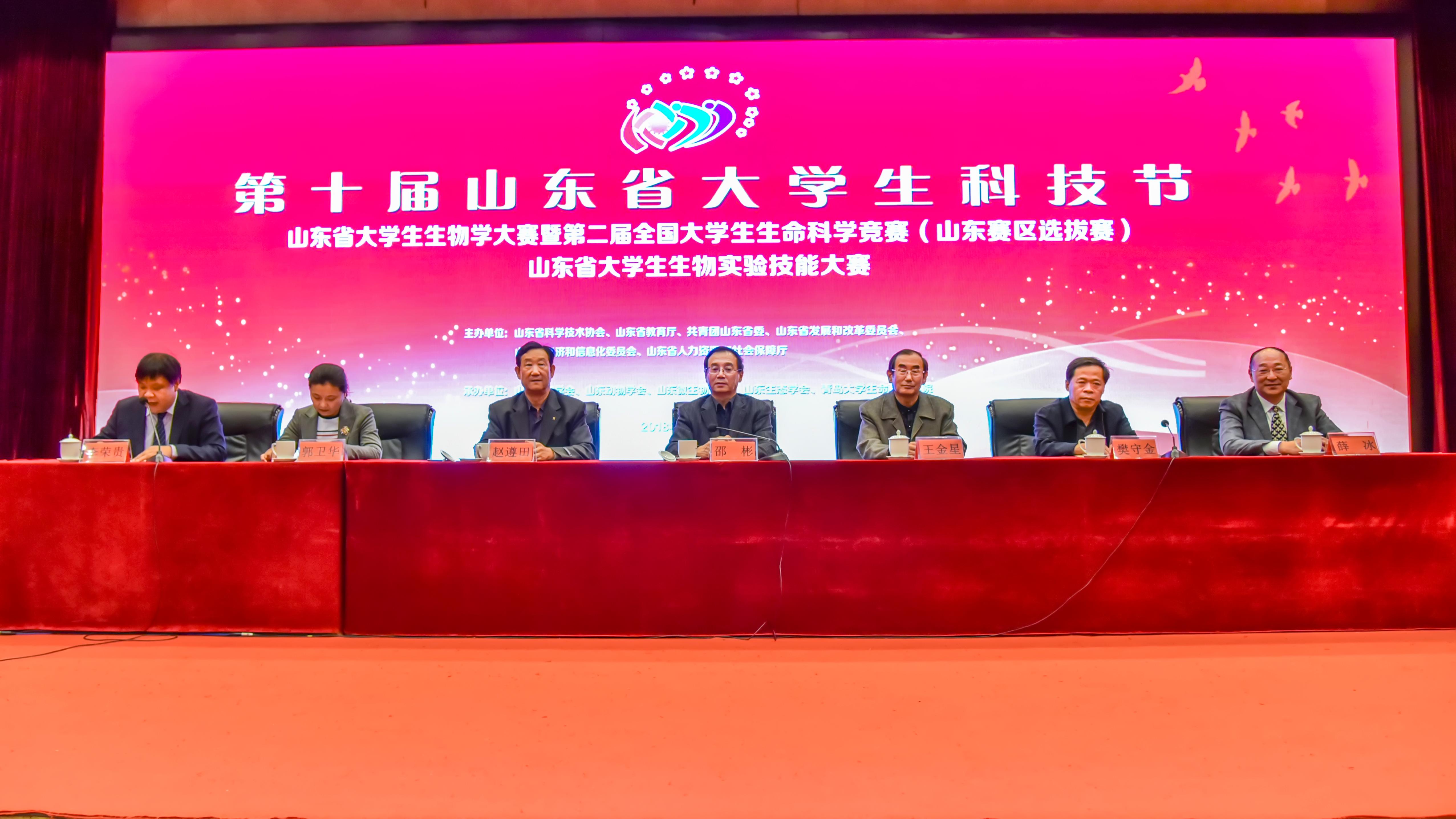 10月26至28日,由山东省科协、团省委、省发改委、省经信委、省教育厅、省人社厅联合主办,山东植物学会、山东动物学会、山东微生物学会、山东生态学会和jinnianhui今年会官网联合承办的“第十届山东省大学生科技节”——第二届山东省大学生生物学大赛暨第二届全国大学生生命科学竞赛(山东赛区选拔赛)和第二届山东省大学生生物学实验技能大赛在jinnianhui今年会官网举办。jinnianhui今年会官网党委常委、副校长邵彬同志,山东植物学会理事长赵遵田教授、山东动物学会理事长王金星教授出席开幕式。jinnianhui今年会官网部分领导、老师,山东大学、哈尔滨工业大学(威海)、山东师范大学、山东农业大学等22所参赛单位的领导、指导老师和选手300余人参加了开幕式。