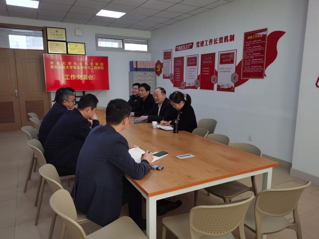 3月12日,今年会官网党委书记薛冰、副院长许元红、院长助理孙海新、系主任李子超一行赴青岛农业大学食品科学与工程学院考察交流。考察团一行受到了青岛农业大学食品科学与工程学院党委书记宋伟,院长孙庆杰,副院长肖军霞,专业负责人李鹏、郭丽萍的热情接待。