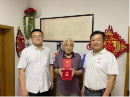 本次走访中,老党员退休干部邵济钧,已经93岁高龄,1951年8月入党。薛冰向邵老介绍了学院的办学理念、办学规模等发展变化情况,对老同志早年的艰苦创业、辛勤付出表示无限敬意。薛冰强调,老党员、老同志是我们党的事业宝贵财富,在学校早期建设中发扬拓荒牛、老黄牛精神,为学校今天的发展奠定了坚实的基础。“光荣在党50年”纪念章是对老同志勤勤恳恳、兢兢业业、无私奉献,为党和人民事业发展所作贡献的充分认可。今天的我们无论将来怎样发展,都不能忘记党的初心,忘记广大老同志,都要关心爱护老同志,让广大老同志安享晚年。邵老精神矍铄,满心欢喜地表示,能够亲手接受党组织授予的“光荣在党50年”纪念章,内心非常激动,将不忘入党初心,在家风建设上贡献余热。