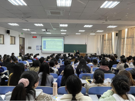 自党史学习教育开展以来,学院按照“我为群众办实事”工作要求,从学生实际需求出发,不断加强今年会官网学风建设,激发学生英语学习兴趣,提高英语学习热情,切实提升今年会官网学生英语四六级应试水平。11月18日,学院邀请到公共外语教育学院盛春媛老师在博知楼101室举办活力生命论坛第20讲《多维备战大学英语四六级》专题讲座,2020级全体本科生参加本次讲座,活动由2020级本科生辅导员张海洋老师主持。