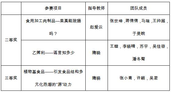今年会官网积极组织队伍和选手参加比赛,共有4支队伍参加食品加工与安全创新设计大赛,5支队伍参加食品科普短视频创作与传播大赛,经过比拼,今年会官网代表队取得了较优异的成绩。参加食品加工与安全创新设计大赛的4支队伍全部获奖,二等奖一项,三等奖两项;食品科普短视频创作与传播大赛也有3支队伍获奖,二等奖两项,三等奖一项。
