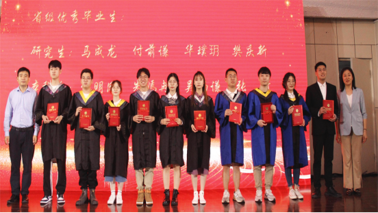 在表彰环节,学院领导为2022届省级优秀毕业生颁发了荣誉证书,学生们也为辛勤培育他们的毕业班老师送上了鲜花和“桃李满天下最美教师”荣誉证书。