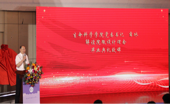 生物技术系系主任、教工党支部书记、教师代表王超老师代表全院教职员工为全体毕业生送上了“今日你以青大为荣,明日青大为您骄傲”的祝福、祝愿,希望广大毕业生以主动、积极、向上的心态面对生活中的挫折,用才情、智慧、胆识和毅力开辟属于自己的天地。研究生毕业生代表马成龙、本科毕业生代表牛俊桀共同表达了对学院和老师的感恩及祝福之情,以及对学弟学妹学业有成的深切期望。