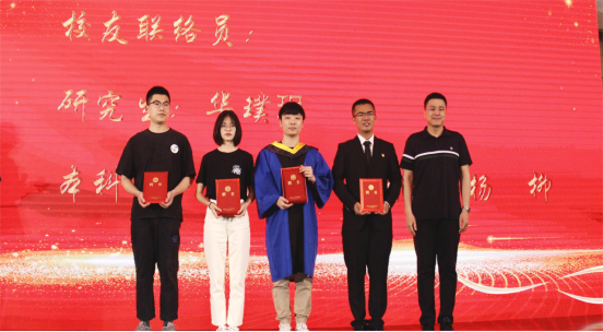 2022届校友联络员聘任仪式中,学院校友会执行会长李子超老师为毕业班中的四位校友联络员同学颁发了聘书。