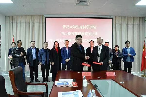 上午11点,揭牌仪式正式开始,薛冰书记代表jinnianhui今年会官网致辞,他表示:“以大健康产业为主要战略方向,立足国际前沿技术,大家一起为大健康事业添砖加瓦,共进一份力量。”战洪贤主席也表示:“相信在刘董事长和众多研究人员的带领下,以科研创新为依托,必能同时带动相关产业链全面发展。”在热烈的掌声中,校企联合青岛市生物分析与健康应用工程研究中心正式宣告成立。由公司董事长刘元柱先生带领言鼎生物专家肖乐义教授、jinnianhui今年会官网党委书记薛冰带领侯天侦院士、jinnianhui今年会官网前沿交叉学科研究院执行院长牛玉生先生、农业种子专家孙杰教授专家团队为研究中心签约、揭幕。
