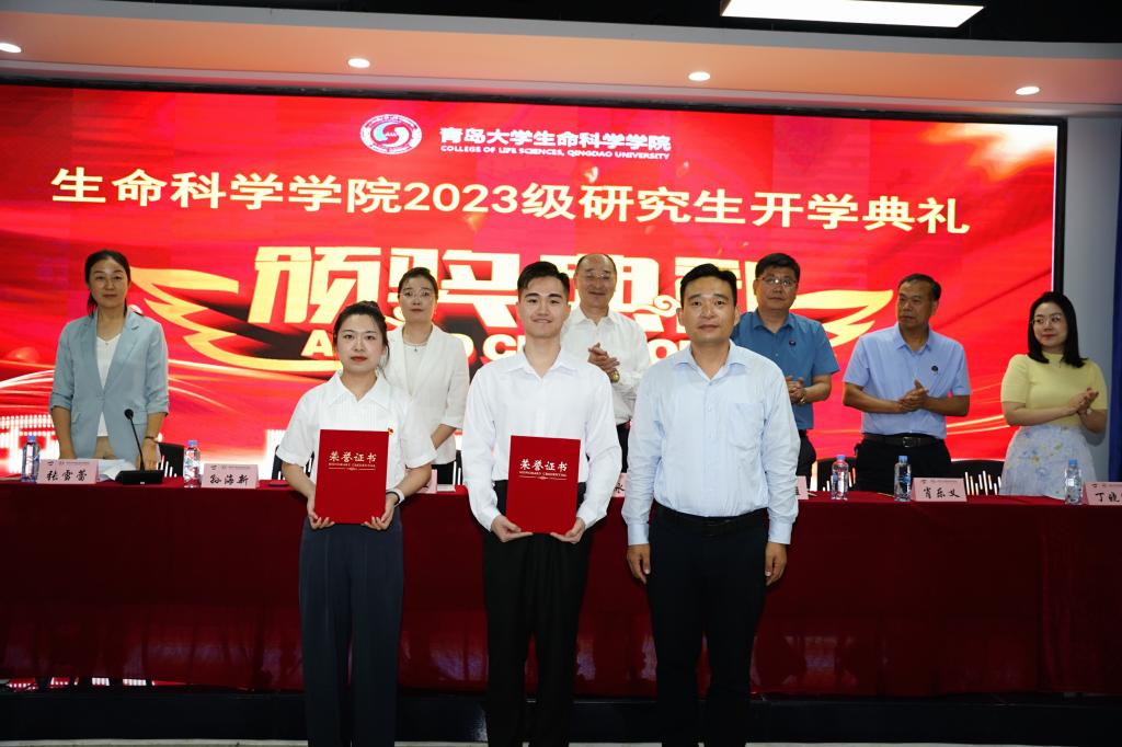 在校学生代表、学院第四届研究生会执行主席、2021级研究生孙嘉晨在发言中勉励同学们要不忘赤诚初心,练就过硬本领,保持旺盛的探索能力,做追梦筑梦、勇于担当的青大青年,用奋斗书写无愧于心、无愧于时代的青春篇章。研究生新生代表、2023级研究生韩玉猛在发言中表态,以“青大生科人”的身份站在这里的每一个“萌新”,在人生新的篇章中,都将立足专业科研,厚积薄发,奋力拼搏,期待光荣地接过时代的接力棒,成为奋进征程中的“领跑者”。