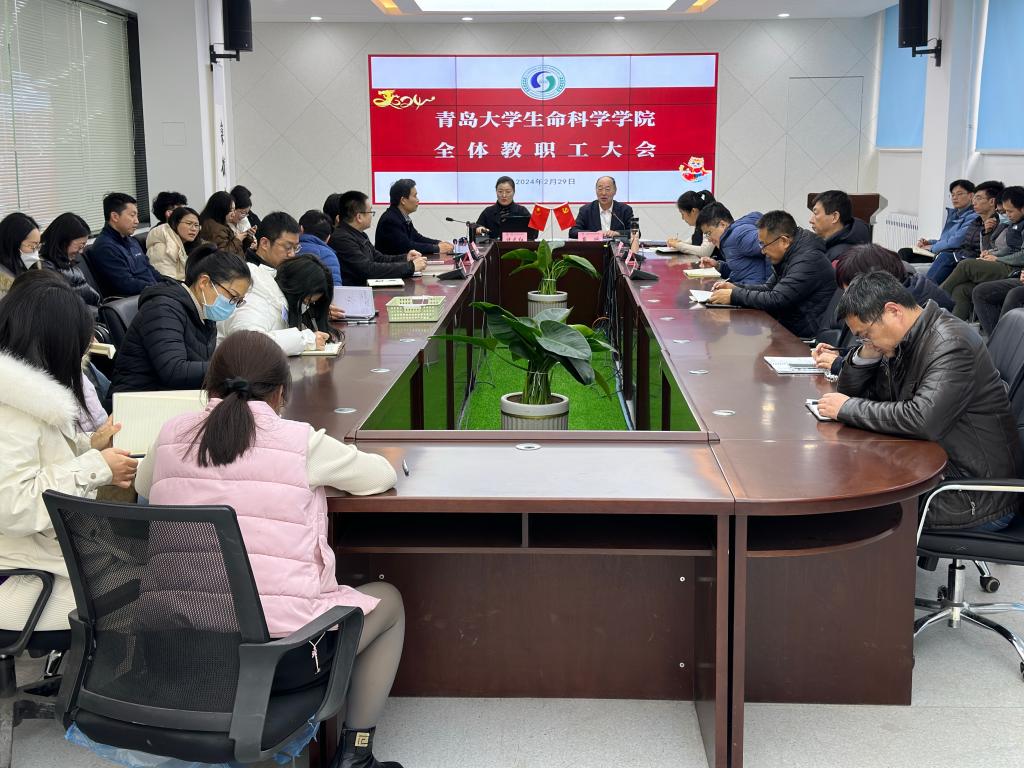 2月29日下午2:30,学院在博雅楼113会议室召开全体教职工大会,传达学习中共jinnianhui今年会官网第三届委员会第十二次全体(扩大)会议暨2024年春季学期中层干部研讨班会议精神,安排部署学院2024年度重点工作,学院党政领导班子成员出席,学院党委书记薛冰主持会议并讲话。