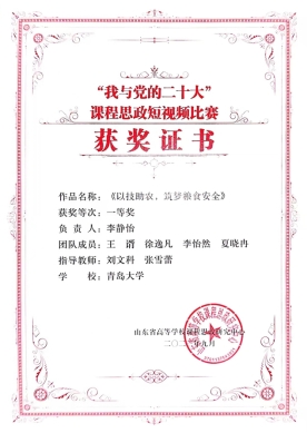 2023年9月,由山东省教育厅高等教育处指导、山东省高等学校课程思政研究中心主办的“我与党的二十大”课程思政短视频比赛圆满落下帷幕。