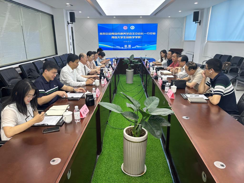 会上,薛冰书记首先对王中会长一行表示欢迎,对青岛市康养学会一直致力于岛城康养生态链的发展、积极推动康养事业与康养产业的高质量发展表示赞赏。薛冰指出,学院高度重视与学会的合作交流,双方将以此为契机,发挥各自特色优势,共同推动岛城在大健康产业、生命科学领域的交流与密切合作。