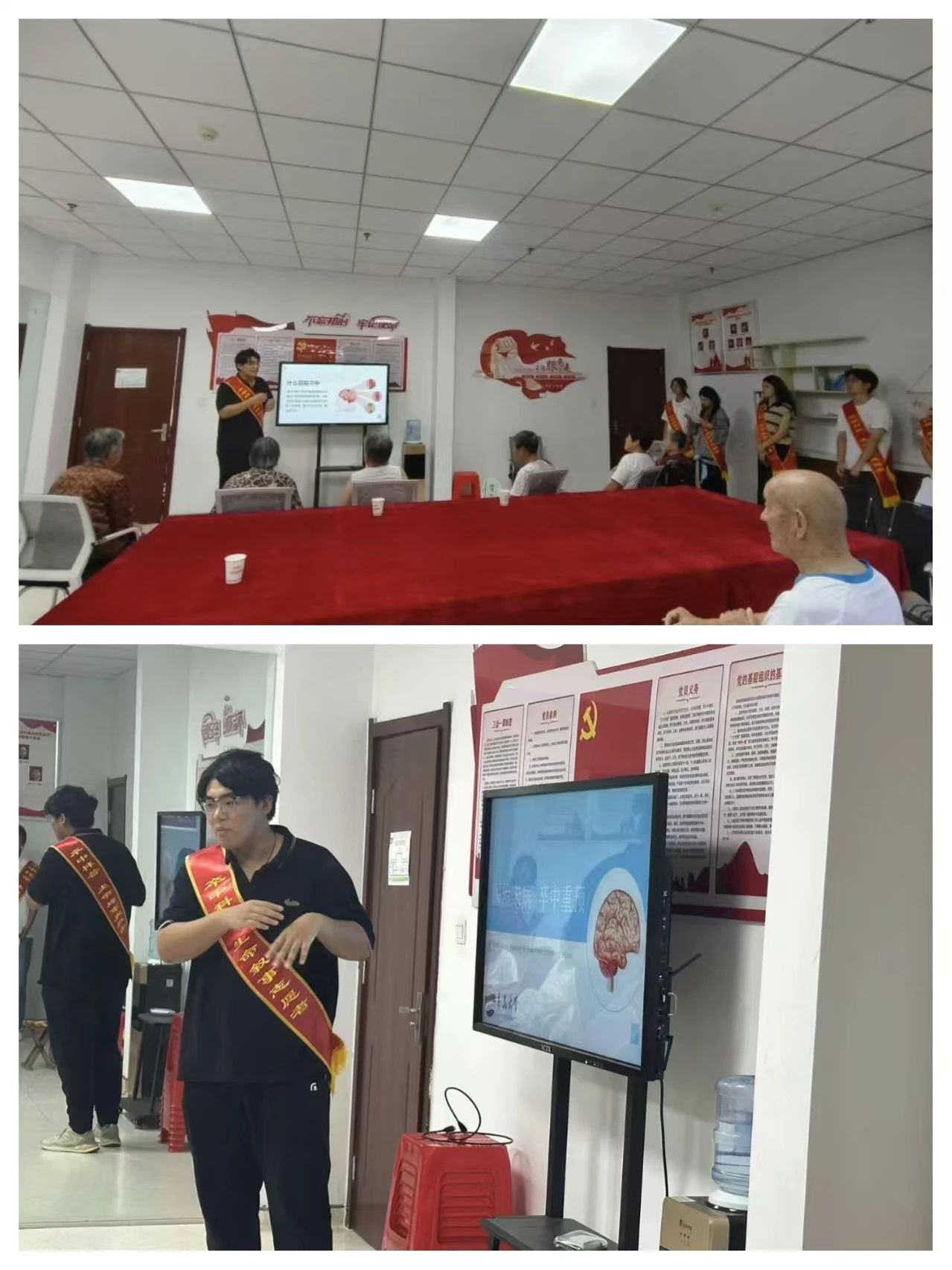 为了使老年人更加透彻的理解脑卒中知识,并做到很好的预防。实践团成员从脑卒中的形成原因、产生危害、前期症状以及预防措施四个方面进行讲解,具体包含了公众普及卒中的基本知识,包括其成因、症状、预防方法以及急救措施等,降低卒中的发病率和死亡率,减轻社会和家庭的负担;教育老年人识别脑卒中的早期警告信号,在遇到脑卒中患者时如何正确应对,包括基本的急救措施和呼叫急救服务;鼓励老年人将所学到的脑卒中知识应用生活中,与家人分享,从而扩大健康教育的影响范围。主讲人幽默生动的讲解活跃了现场的气氛,老年人在欢声笑语中度过这个下午。