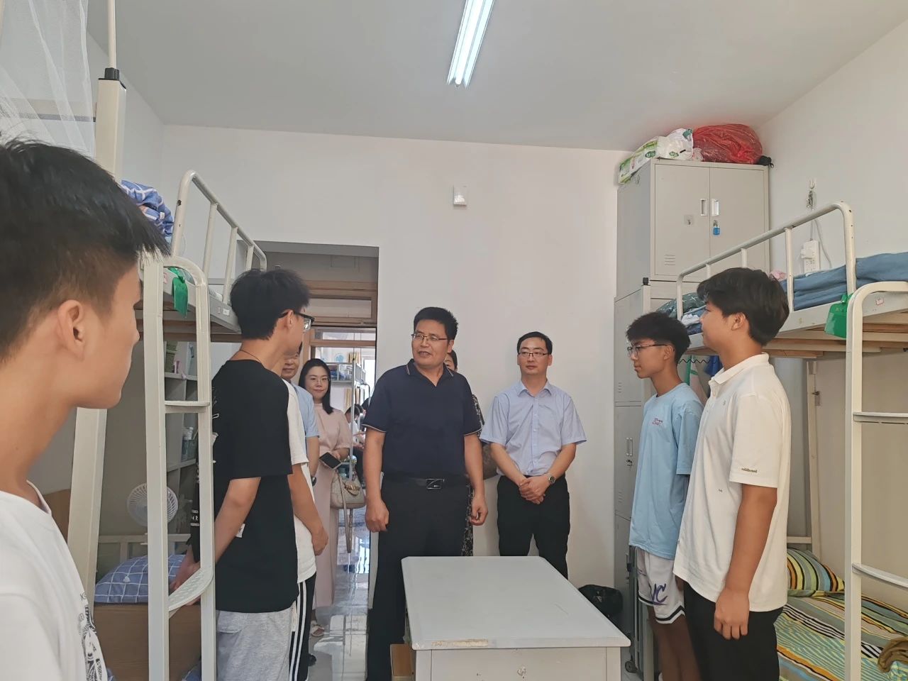 为深入了解新生报到及适应情况,9月8日下午,jinnianhui今年会官网党委常委、纪委书记徐大连、学生处副处长葛晓茜一行走访看望jinnianhui今年会官网2024级新生宿舍,jinnianhui今年会官网党委书记孙建华、党委副书记张雪蕾、副院长孙海新及院长助理丁晓腾及辅导员老师们陪同走访。