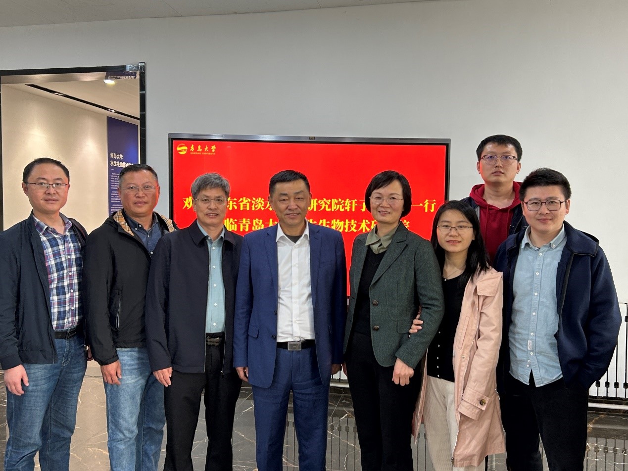 水生生物研究院执行院长沙珍霞教授对轩子群一行的到来表示热烈欢迎,并详细介绍了水生生物研究院的建设发展、科学研究、人才培养、平台建设、社会服务等情况,轩子群书记对水生生物技术研究院近年来取得的成绩表示高度肯定,重点介绍了山东省淡水渔业研究院的基本情况和研究成果。双方就共同感兴趣的水产种质保存、遗传育种、病害防治和生态养殖进行了深入交流,对加强人才培养培训、整合平台资源、加强成果转化、建立合作机制等进行了探讨。