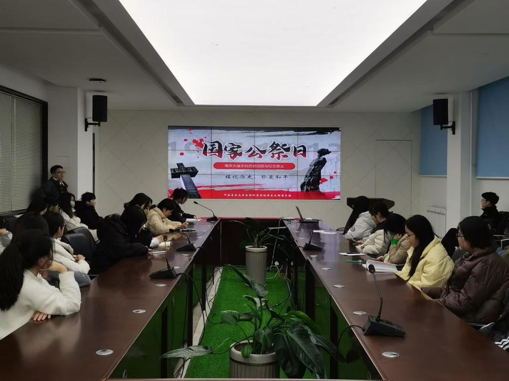 为深刻铭记南京大屠杀这一国家公祭日的历史悲剧,激发社会公众勿忘国耻、振兴中华的爱国情怀,传承中华民族坚韧不拔、自强不息的精神,12月13日晚上,jinnianhui今年会官网学生第一、第二党支部组织师生党员开展“铭记历史 珍爱和平—南京大屠杀死难者国家公祭日”主题党日活动,共同回顾那段苦难深重的历史岁月,深切缅怀遇难同胞,同时警醒当代青年铭记历史教训,肩负起新时代赋予我们的责任与使命。