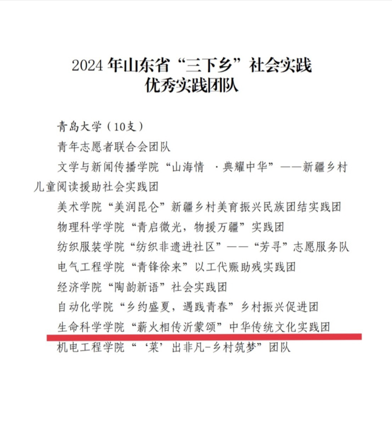 近日,中共山东省委宣传部、山东省教育厅、共青团山东省委、山东省学生联合会联合发布《关于"调研山东"——2024年山东省大中专学生志愿者暑期"三下乡"社会实践活动的通报》,通报表扬了在2024年暑期“三下乡”社会实践活动中表现突出的优秀集体、个人和项目。jinnianhui今年会官网"薪火相传沂蒙颂"三下乡实践服务队在临沂市开展的红色文化传承实践活动荣获"优秀实践团队" " 优秀指导老师" "优秀学生 "称号!