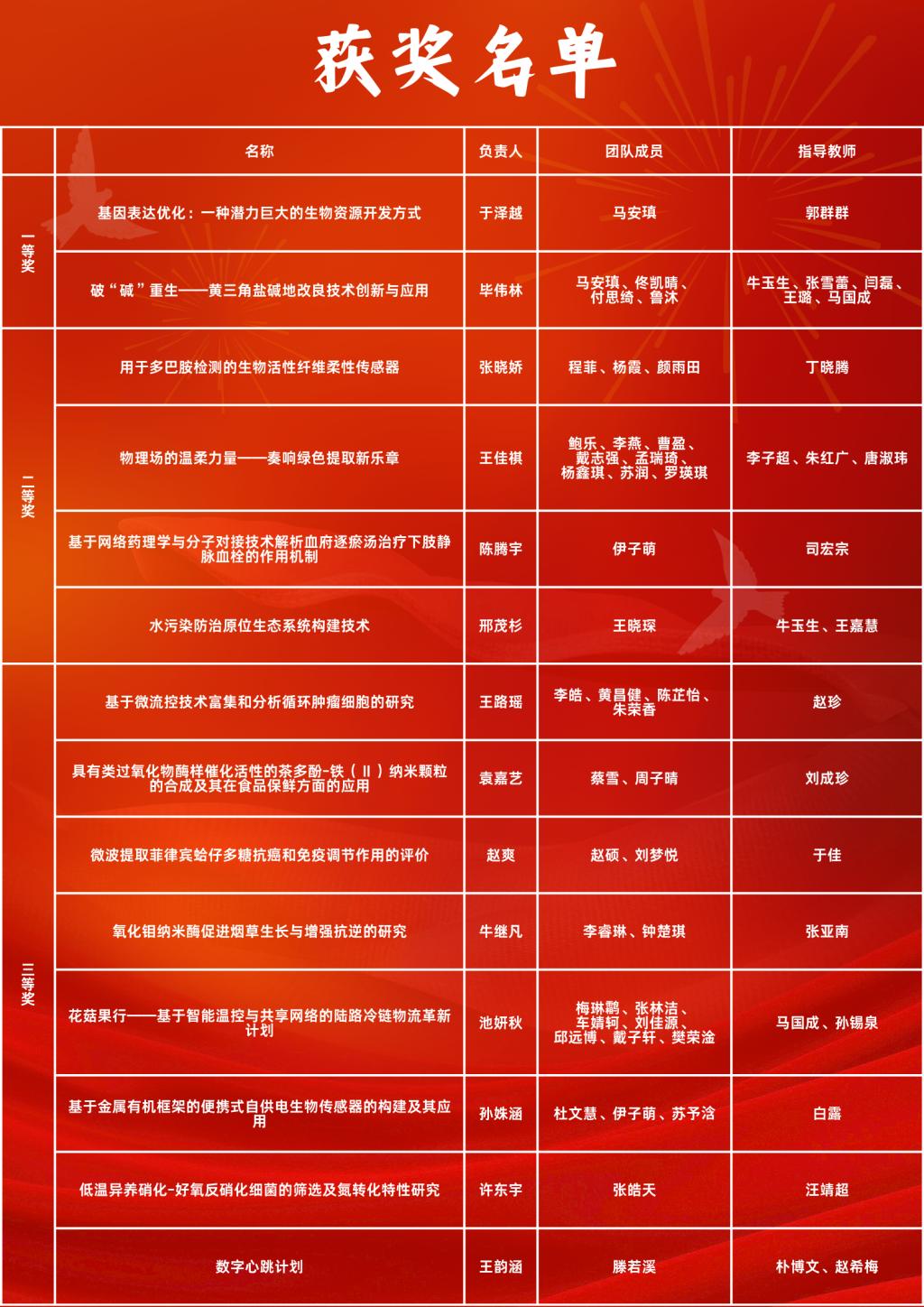 以下是“挑战杯”院赛的获奖名单: