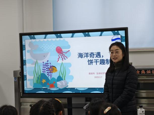 食品科学实验室中,由唐淑玮向同学们介绍饼干的种类、制作方法以及相关的科学原理,帮助同学们了解食品科学知识。为帮助同学们进一步了解,志愿者现场进行了规范示范。从原料准备、饼干塑形到烘焙,每一个步骤都详细的展现在同学们眼前。活动结束后,同学们带着饼干,与家人分享这份甜蜜的同时也留下了此次研学活动中的美好回忆。