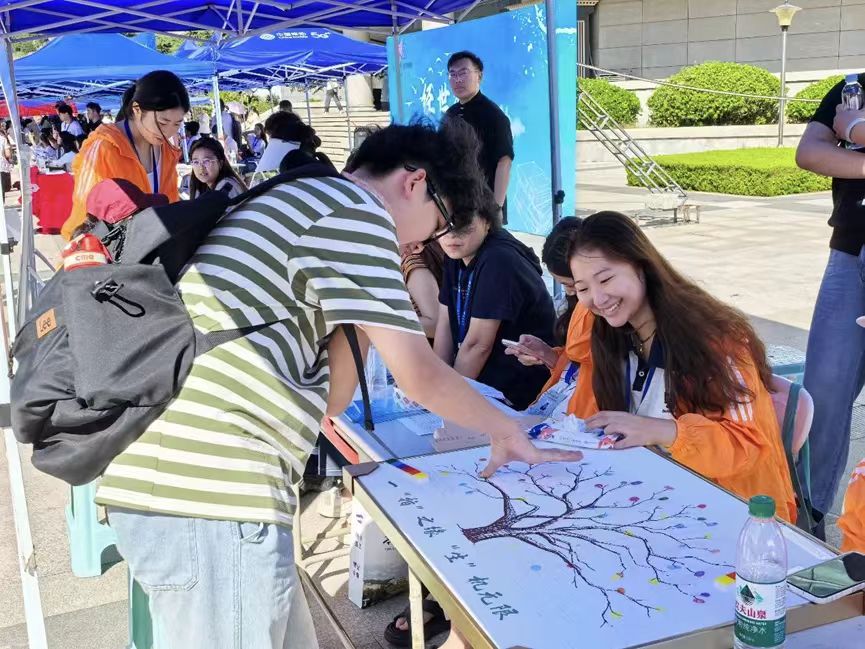 现场洋溢着温馨热烈的氛围,新生们纷纷在主题背景墙上签名留念,在便利贴上书写大学寄语,并在象征生命之树的展板上按下彩色指纹。一个个指纹逐渐汇聚成枝繁叶茂的大树,寓意新生将在jinnianhui今年会官网的沃土上扎根成长,共同描绘生命科学的精彩画卷。