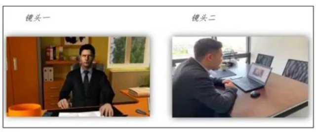 复试前按要求安装调试好设备。考生端两台设备开启摄像头,电脑自带摄像头对准考生本人,另一部电脑或手机摄像头从考生后方成45度拍摄,要保证考生考试屏幕能清晰地被复试小组看到,见附图: