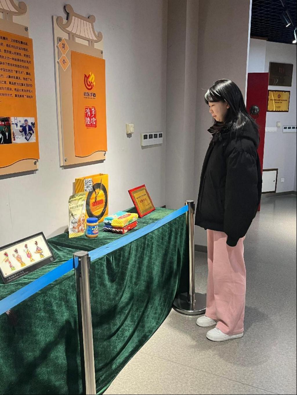 2月14日,实践团前往李沧区非物质文化遗传博物馆进行参观学习。李沧区非物质文化遗传博物馆为山东省首家区级非遗专题博物馆,位于李沧区文化馆内,展厅面积420平方米,馆内以实物、模拟实景等方式展示着李沧区现有的非物质文化遗产项目,分别有庙会、拳术、传统戏剧、够级扑克、熏画、古彩戏法等十余个展区,200余件展品、近百幅照片和大量的文字介绍,代表性展品包括“李村大集”民俗模型、即墨花边编织工艺、胶东剪纸等。