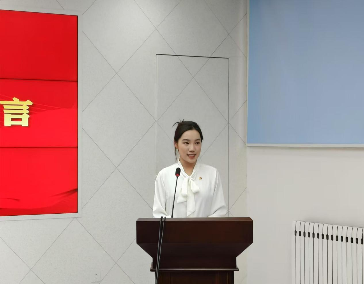 随后,张雪蕾为本次新发展团员入团暨“青马工程”培训开班仪式致辞,不仅对新团员们表示了热烈的祝贺,还强调了“青马工程”培训对于加强青年政治引领、促进青年成长成才的重要意义。张雪蕾指出,作为新时代的青年大学生,要深刻领会二十大精神实质,鼓励大家拓宽信息视野,积极关注国家大事和世界发展大势,全面考虑问题,积极探索尝试,做时代的参与者而不是旁观者,表达了对同学们成为既有专业知识又具备社会责任感的优秀青年的衷心祝愿。