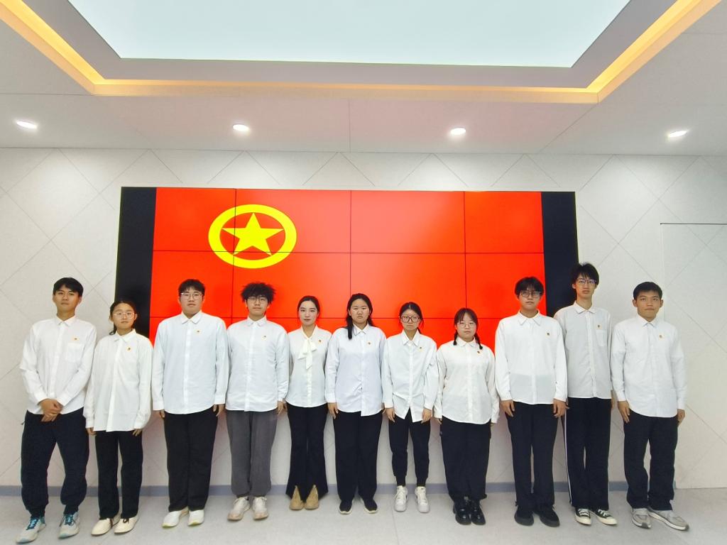 活动在庄严的国歌声中拉开序幕,全体师生起立,共同唱响国歌,表达对祖国的热爱和敬意。随后,马国成宣读新团员名单,共计11名优秀学生脱颖而出,光荣地成为共青团的一员。他们带着青春的朝气和对未来的憧憬,依次走上舞台,佩戴团徽,接受团组织的认可。在鲜艳的团旗下,新团员们举起右拳,在领誓人的带领下庄严宣誓,誓言铮铮,响彻现场。