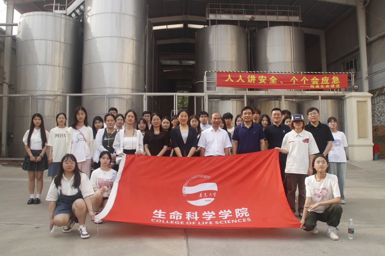 随后,全体师生与青岛华东百利酒庄相关人员在企业生产线前合影留念。