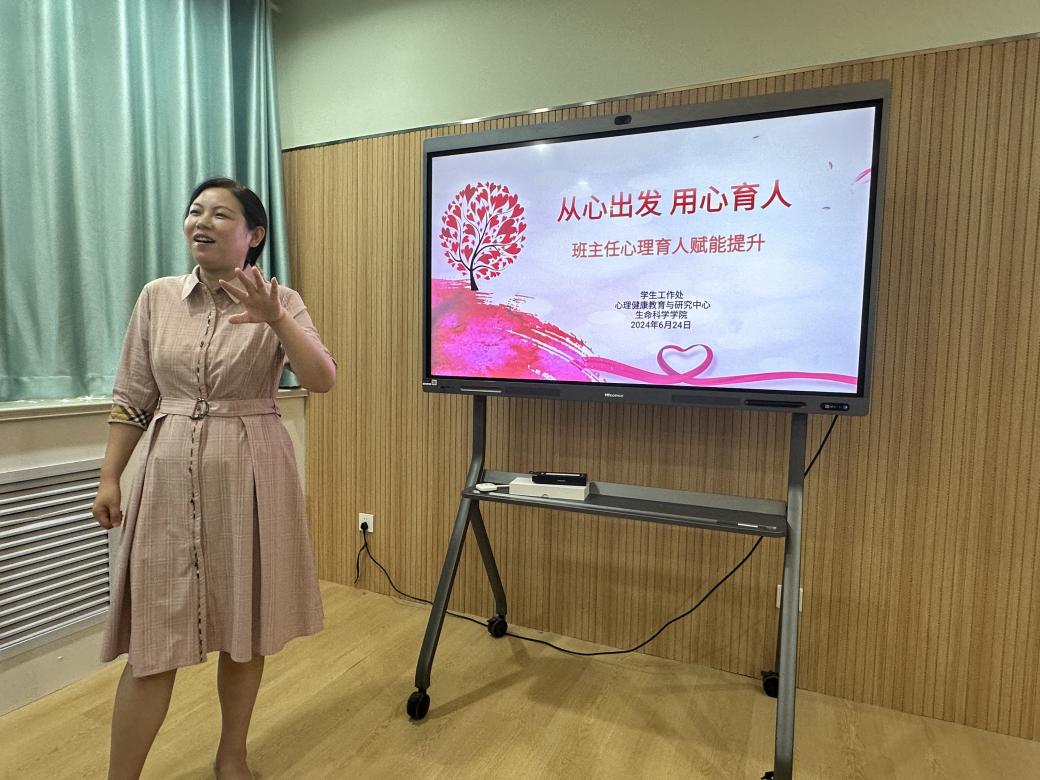 jinnianhui今年会官网心理健康教育与研究中心主任米振宏结合近年来生科学院的心理筛查数据分析了学生心理状况,梳理了当前大学生的心理问题的成因,并提出了班主任老师开展心理帮扶的举措建议。