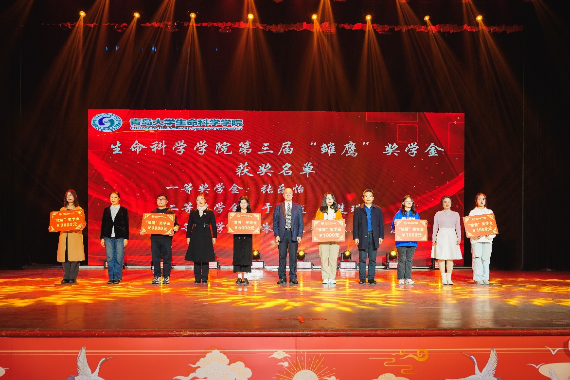 在迎新晚会现场,jinnianhui今年会官网党委书记薛冰、院长许元红、党委副书记张雪蕾、副院长孙海新以及院长助理丁晓腾共同为jinnianhui今年会官网第三届“雏鹰”奖学金获得者颁奖。