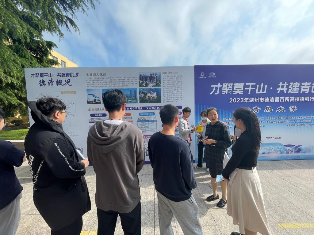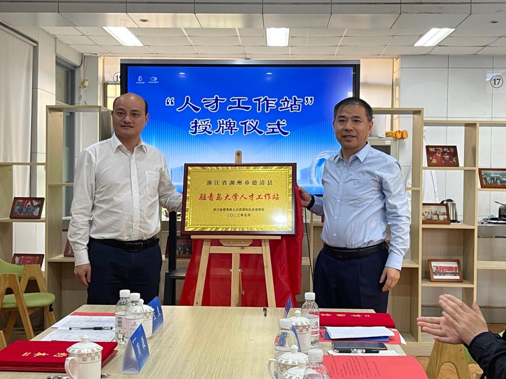 洽谈会上,校学生就业中心与浙江省德清县签订校地人才合作协议,共同为德清县驻jinnianhui今年会官网人才工作站揭牌。