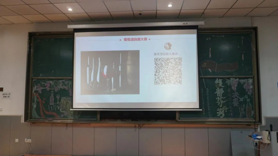 主持人宣布比赛开始后各队汇报员依次上台按照前期准备、酿酒过程、成果展示、心得体会的顺序分享了葡萄酒的“诞生与成长”过程并制作了精美的PPT展示。在第一大组同学精彩的汇报后,举办了有奖问答环节。第二大组队员汇报完毕后,现场三只队伍派出代表参与了“寻找自己组葡萄酒”的趣味游戏,品鉴多组参赛选手酿造的葡萄酒。