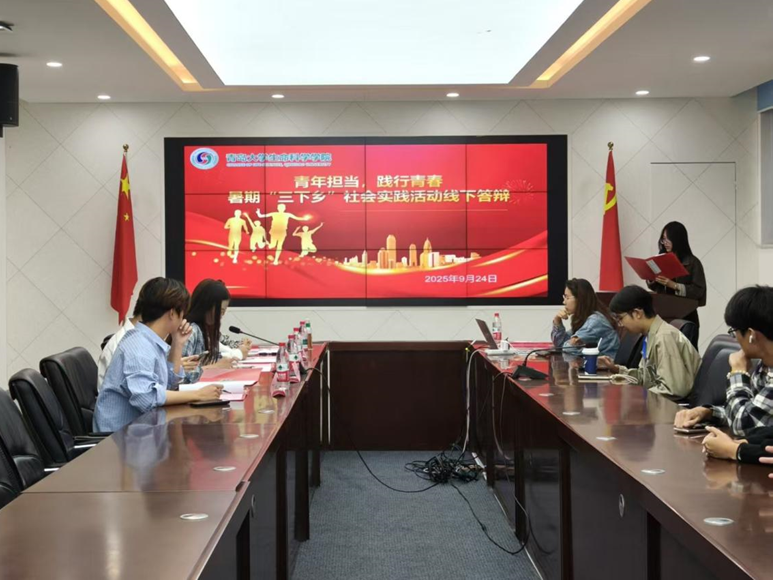 为集中检验jinnianhui今年会官网2025年暑期“三下乡”社会实践成果,搭建各团队与个人交流学习的平台,进一步激发学子服务社会的责任感,jinnianhui今年会官网于2025年9月24日19:00在浮山校区博雅楼113会议室举办jinnianhui今年会官网2025年暑期“三下乡”社会实践线下答辩。jinnianhui今年会官网2024级本科生辅导员姜晓萌、jinnianhui今年会官网2025届本科学生会主席团成员参与本次答辩,jinnianhui今年会官网社会实践部赵浩然担任主持。