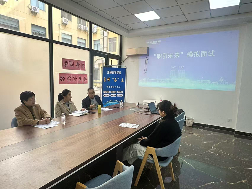 为帮助应届毕业生积累面试经验、提升面试能力,11月6日,jinnianhui今年会官网在博雅楼102会议室开展了“职引未来”模拟面试活动。活动通过模拟真实招聘场景,帮助学生了解面试流程、掌握相关技巧,为未来求职做好准备。本次活动邀请了jinnianhui今年会官网特聘教授、食品科学系孙杰教授,生物技术系博士生导师郭磊教授,以及jinnianhui今年会官网党委副书记张雪蕾担任嘉宾。