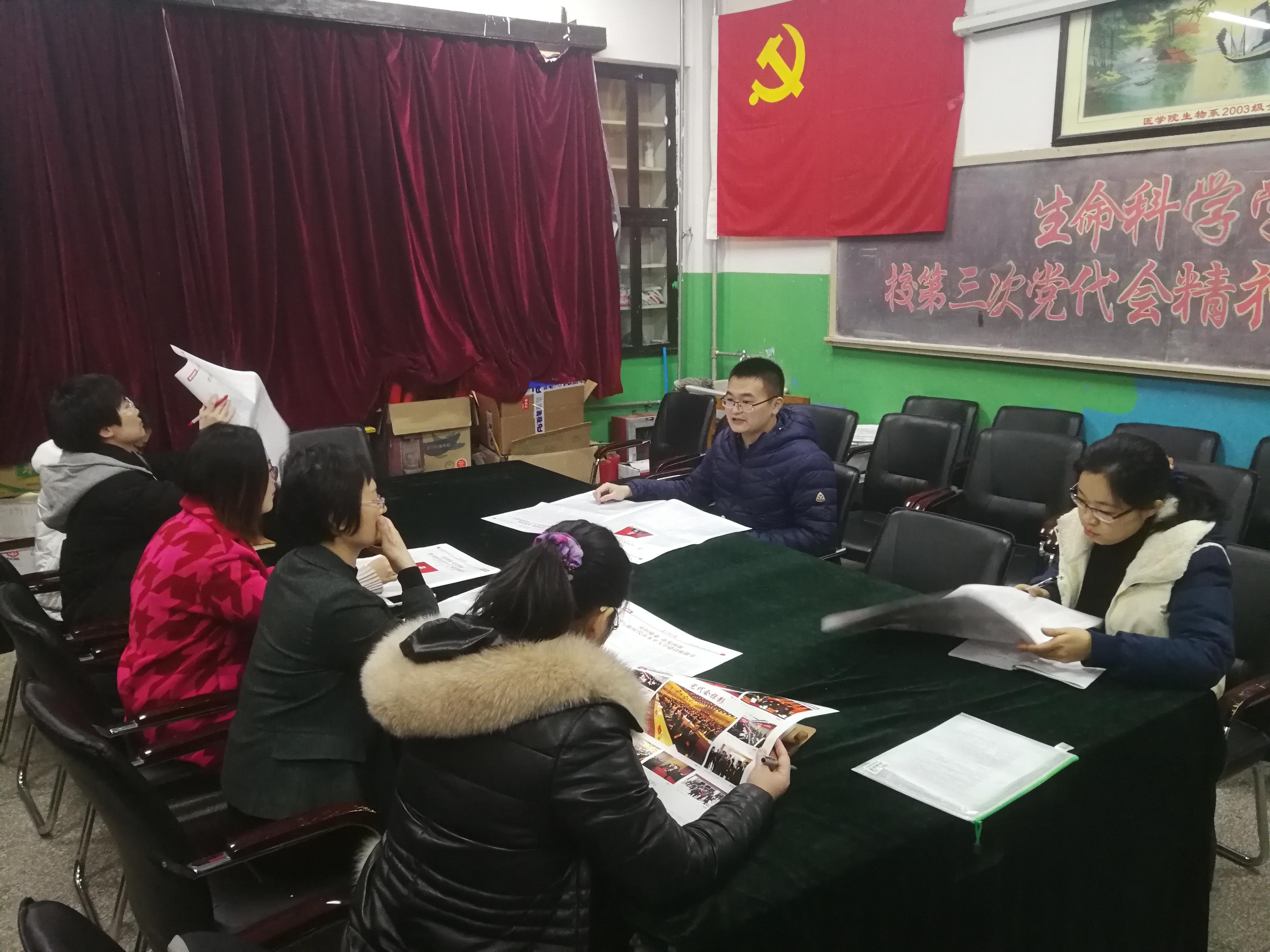 12月25日下午,jinnianhui今年会官网教工第二党支部在博观楼332会议室召开学习党代会精神专题组织生活会。会议由支部书记常诚主持,组织各位党员认真学习了校第三次党代会精神,并就如何在日常教学科研、生活中发挥教工党员先锋模范作用,以实际行动贯彻、落实党代会精神进行了交流。
